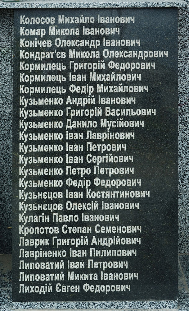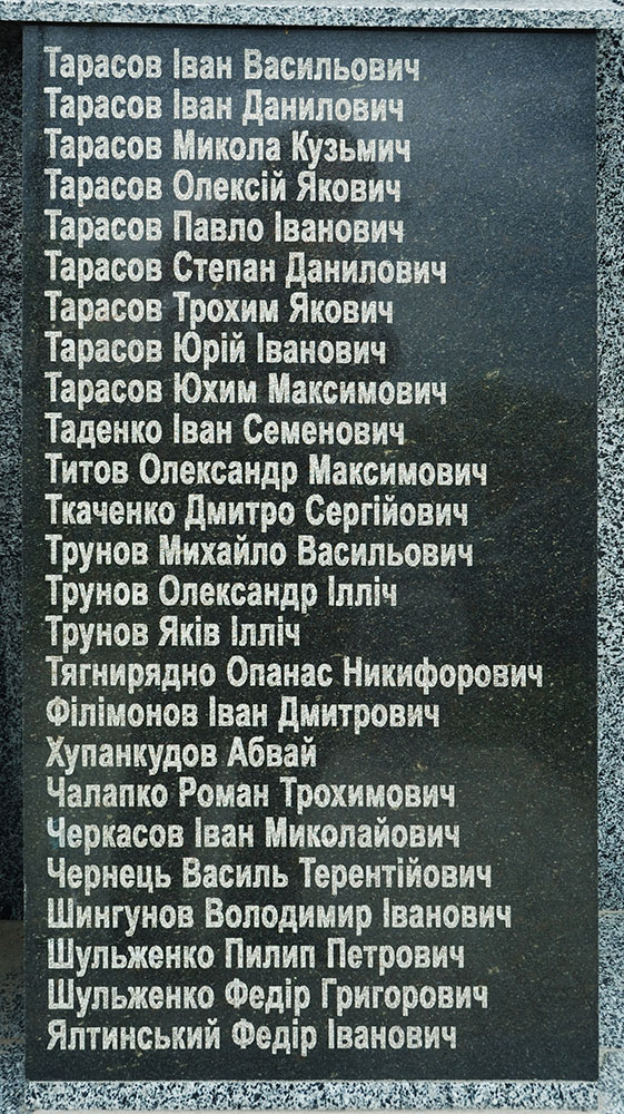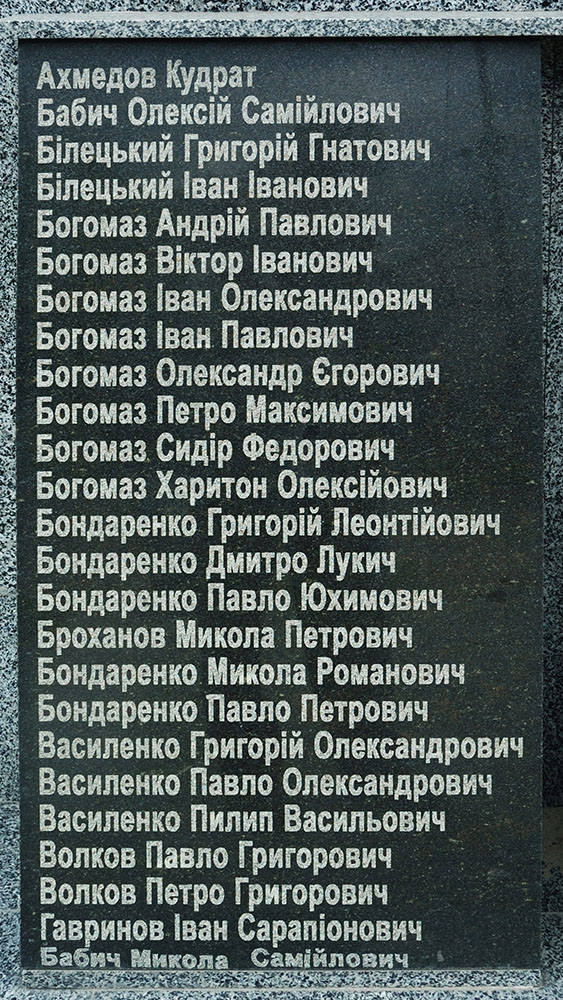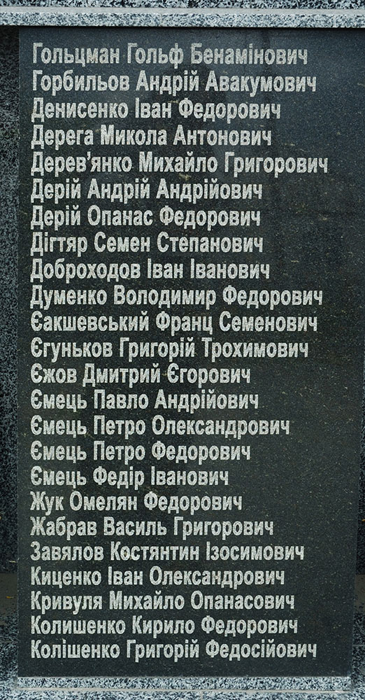 Списки захороненых в братской могиле бойцов на мемориальных плитах отсутствуют.