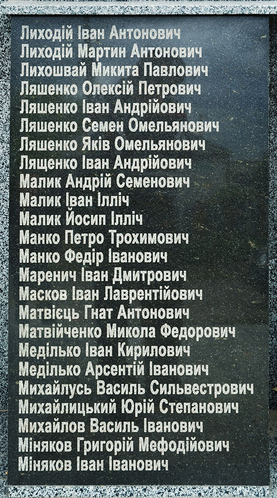 Мемориальные плиты с фамилиями односельчан не вернувшихсяся с полей сражений Великой Отечественной войны |