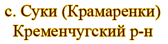 с. Суки, ныне с. Крамаренки расположено в семи километрах на север от ж.д. станции Потоки на левом берегу р. Псёл, по трассе Кременчуг - Решетиловка. Братская могила находится на западной окраине села на опушке соснового леса. Координаты по GPS: N 49.10,3935 E 33.36,0829. Месторасположение