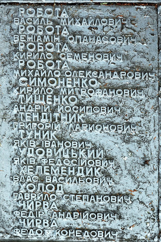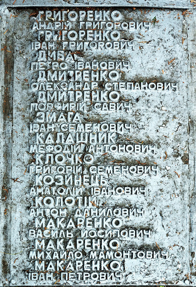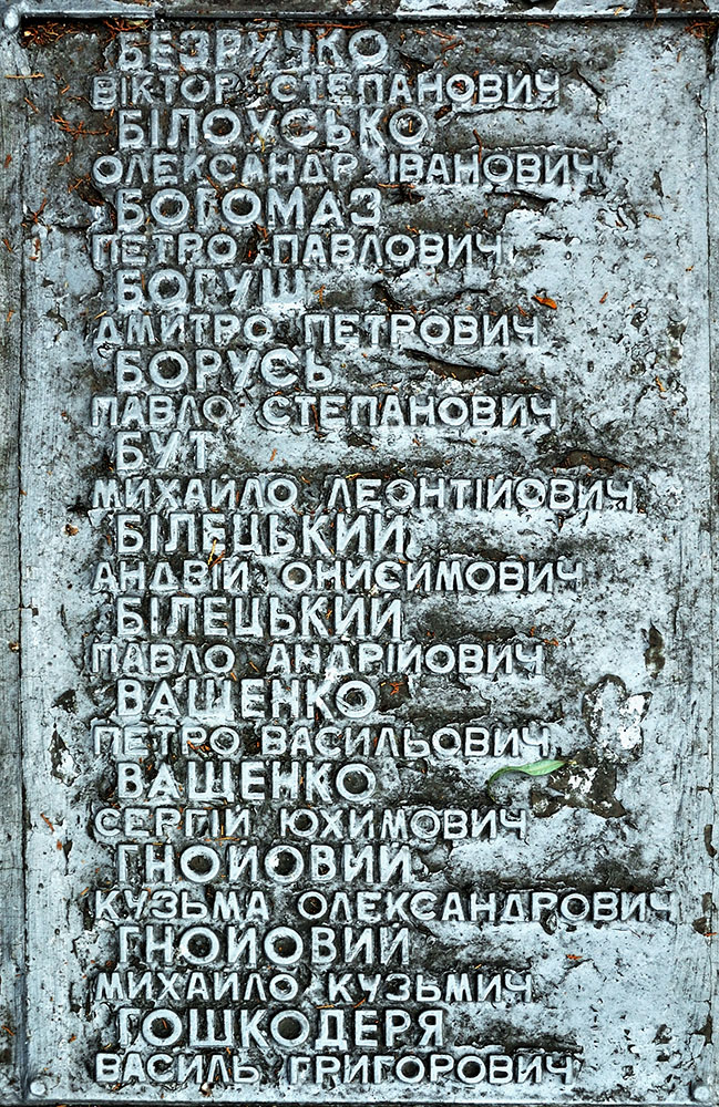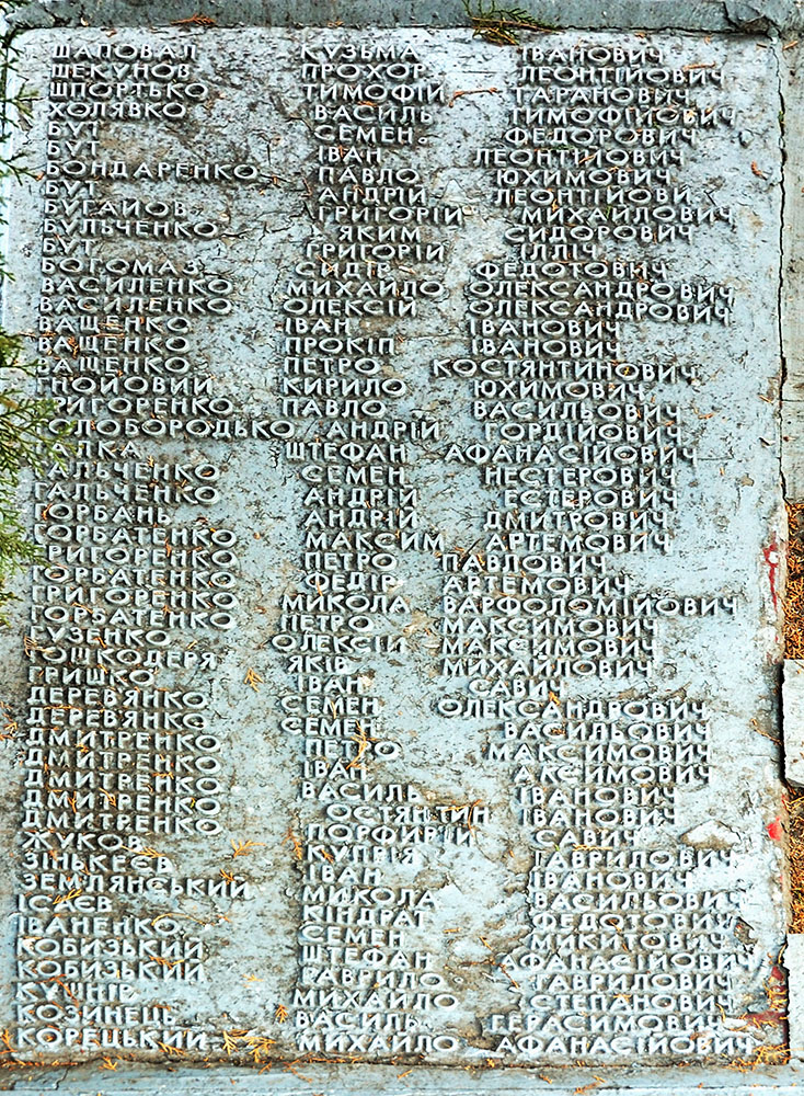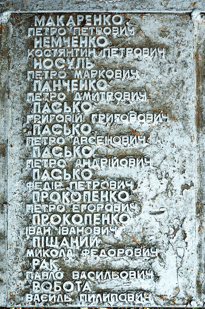 Возле братской могилы похоронены убитые бандитами: член ВУЦИК Григоренко Павел Васильевич, первые коммунисты села: Кобызский Григорий Григорьевич и Черныш Яков Яковлевич, а также, убитый в 1928 году Бут Иван Романович.